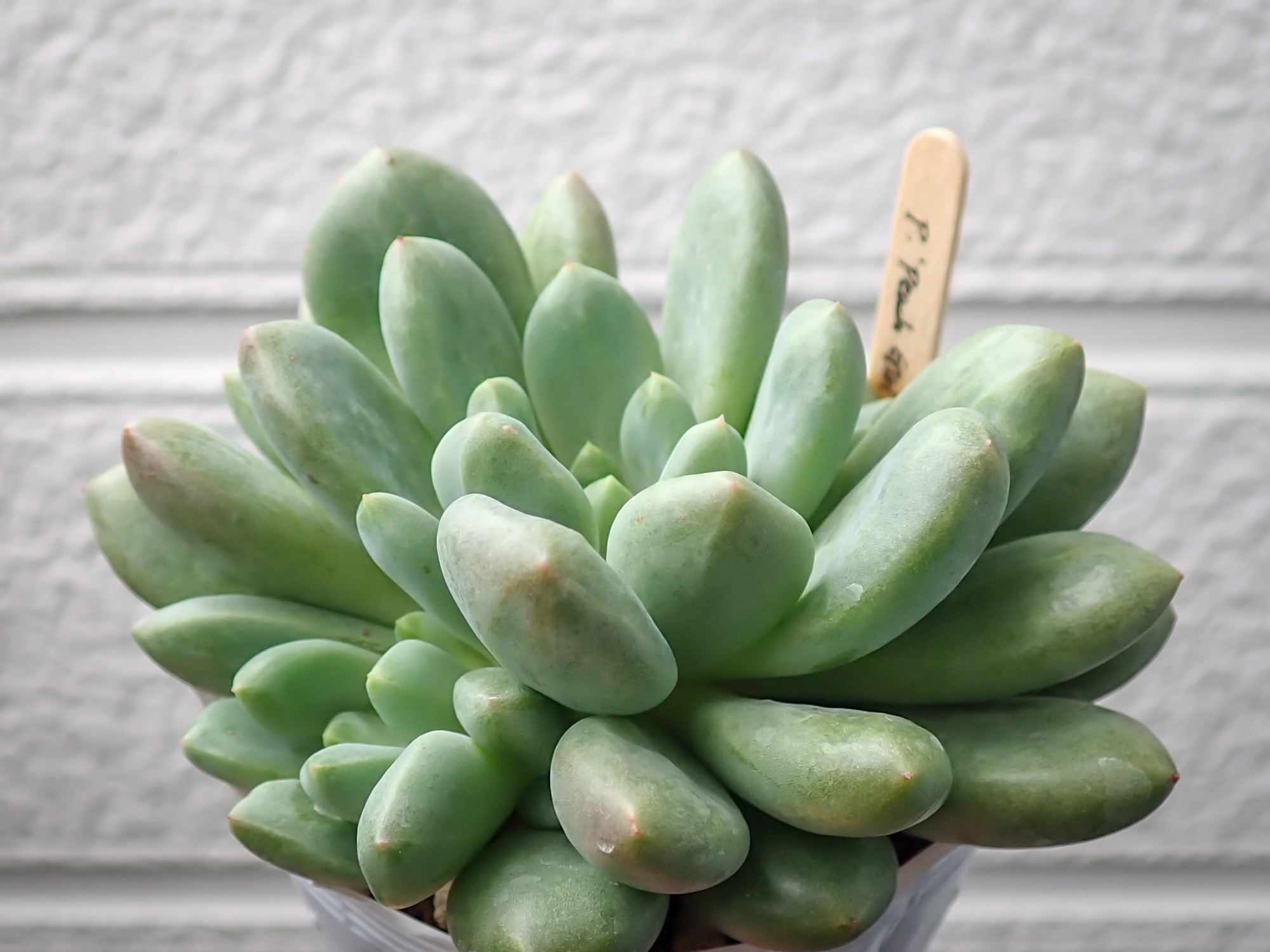 エケベリア キューティーピーチ エケベリア 2022年06月08日 ベンケイソウ科エケベリア属 キューティーピーチ 学名:Echeveria 'Cutie Peach' 育成:春秋型 越冬-1℃ ロゼットタイプ 増やし方:カット芽挿し、子吹き パキかな?というくらいのむっちむちエケベリア。 たまに見かけるのでレアというほどではないのだろうが、情報が全然ない。 紅葉すると白っぽくなりエッジの方からピンクのグラデーションが入るようだ。