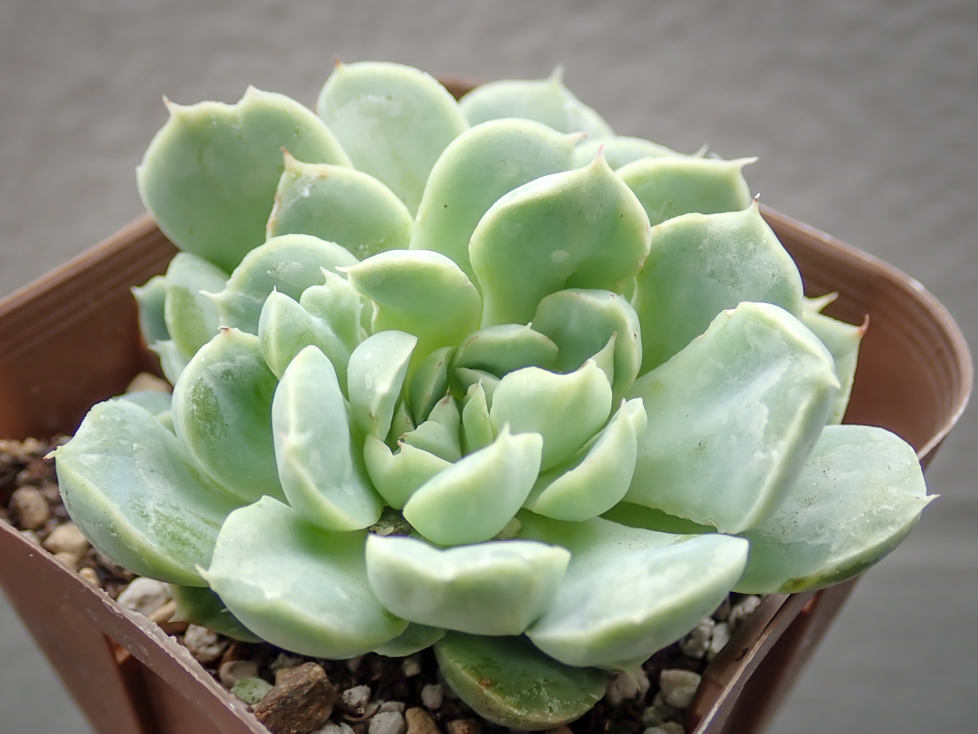 「月影の宵」はイリアでなく、魅惑の宵(E. agavoides 'Red Edge')xエレガンス(E. elegans)つまり魅惑の月(E. 'Miwakunotsuki')の姉妹だという説が有力のようだ。