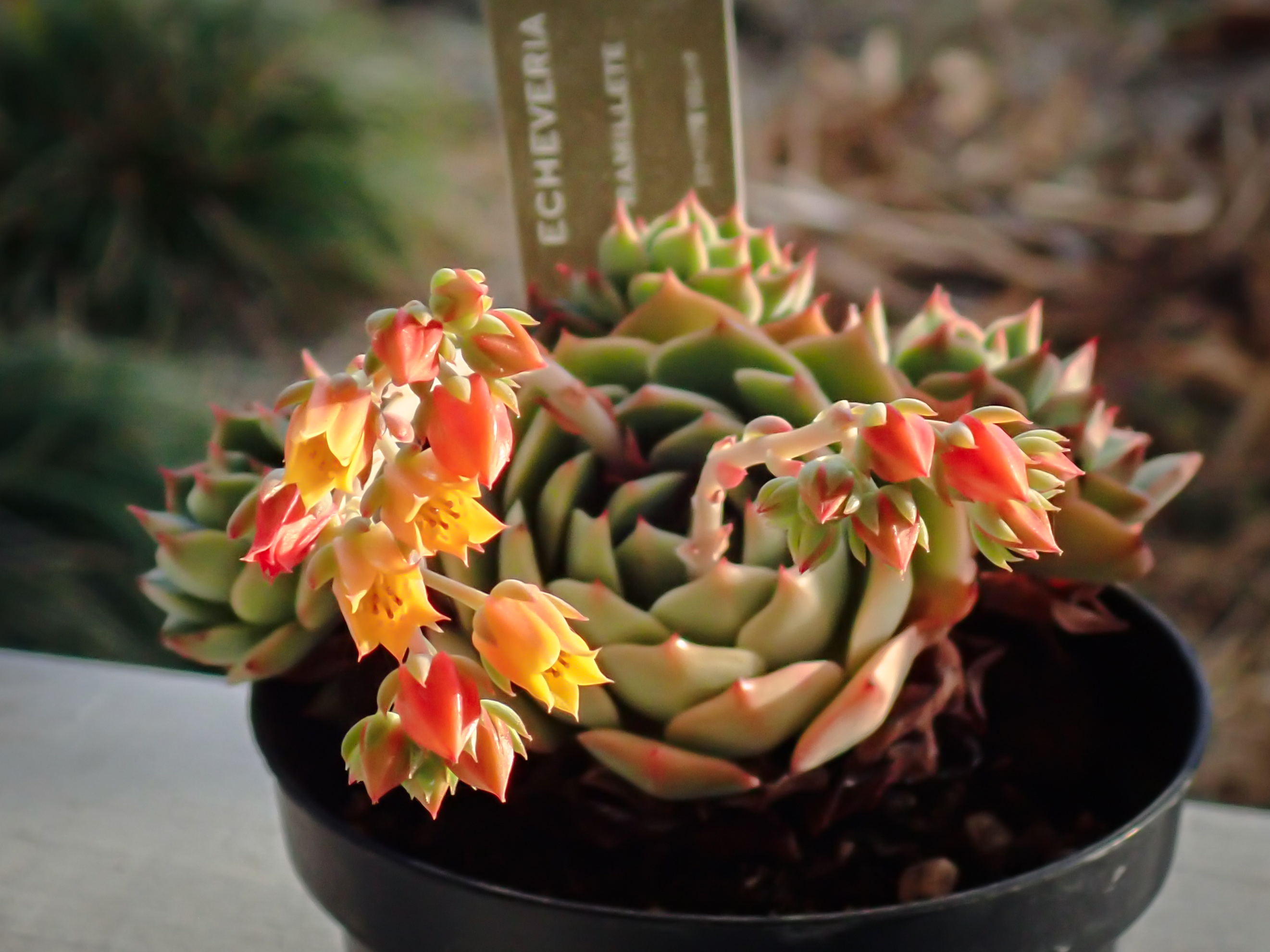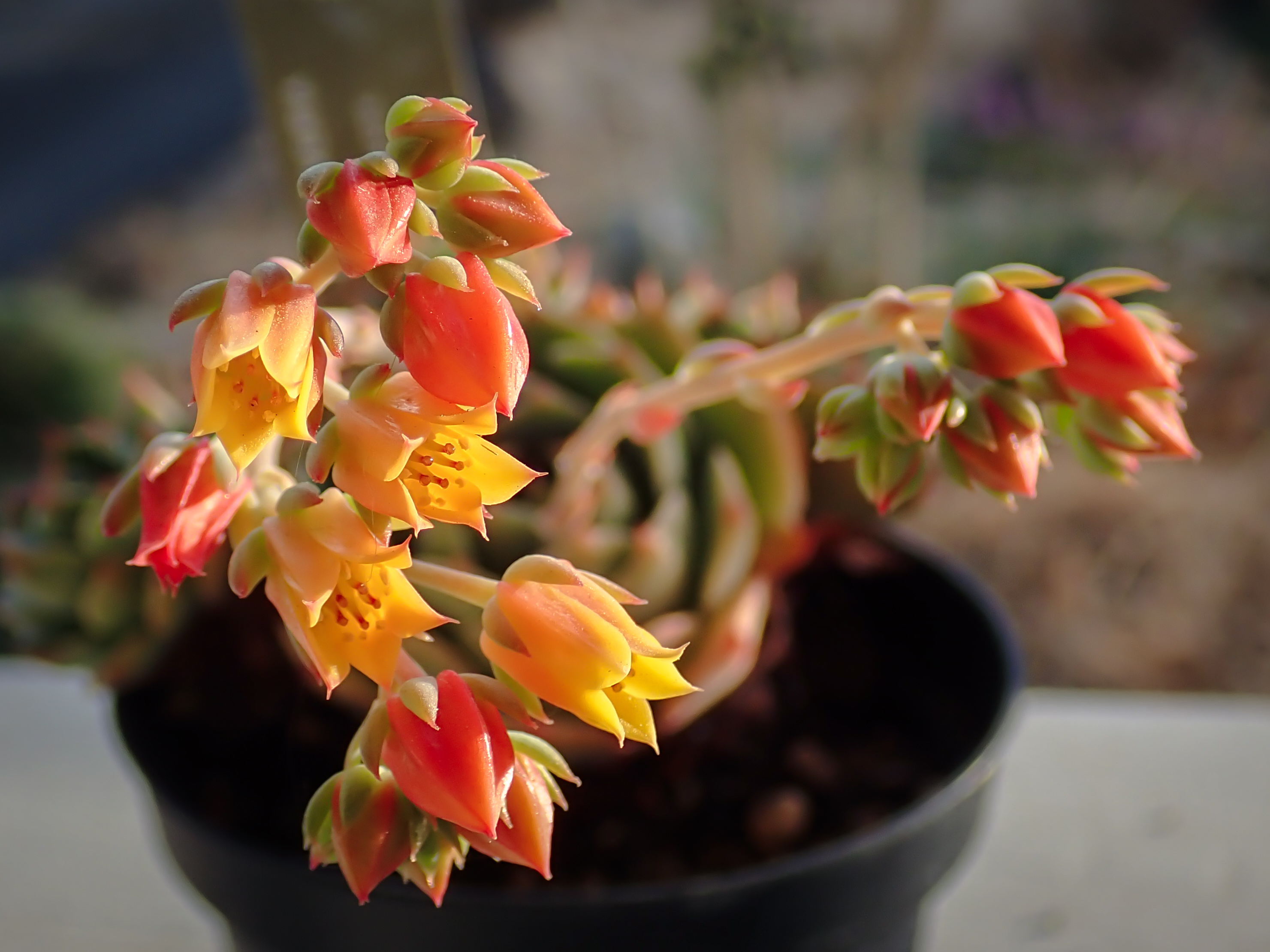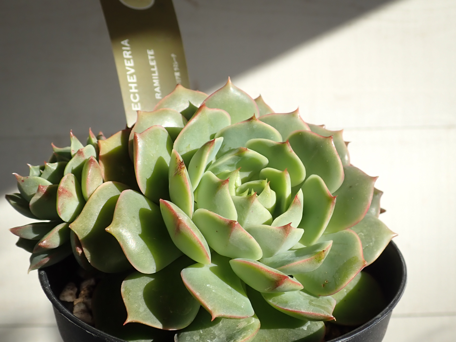 エケベリア ラミレーテ エケベリア 2023年03月23日 ベンケイソウ科エケベリア属 ラミレーテ 学名:Echeveria 'Ramillete' 育成:春秋型 越冬-1℃ ロゼットタイプ 増やし方:カット芽挿し、葉挿し、子吹き アップルグリーンの葉に赤い爪が鮮やかなエケベリア。 葉の縁にはチクチク細かい毛がわずかに生えており、デローサやグリーンジョイ、ライムアンドチリにも近い血を感じる。 2022.11.12 2023.3.11開花。杏色~黄色のグラデーションがかわいい。