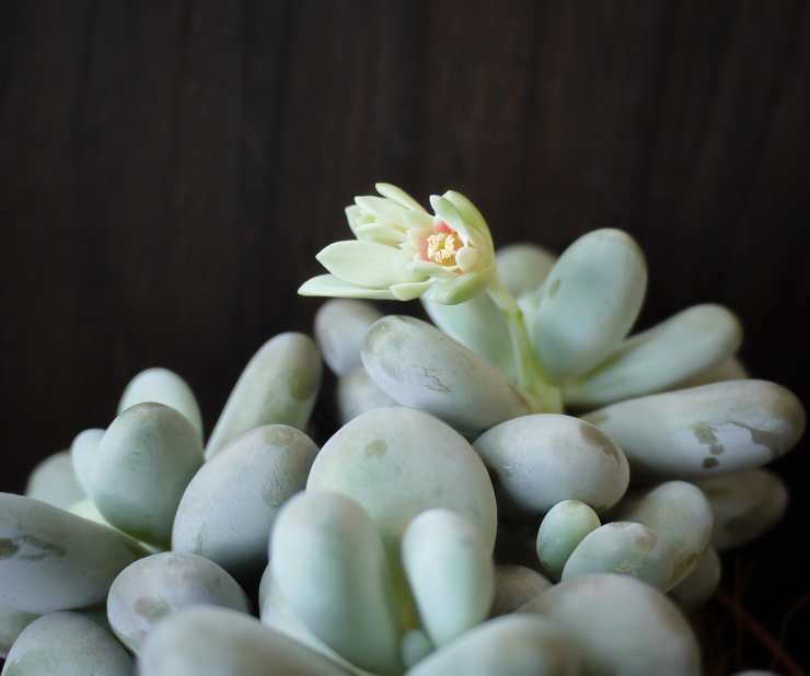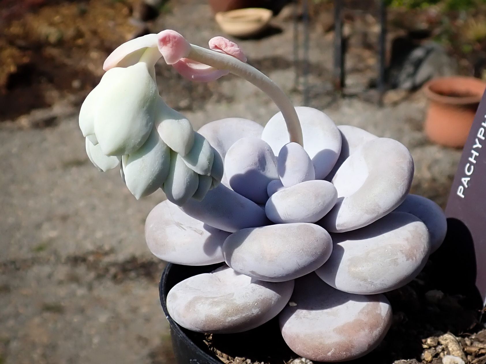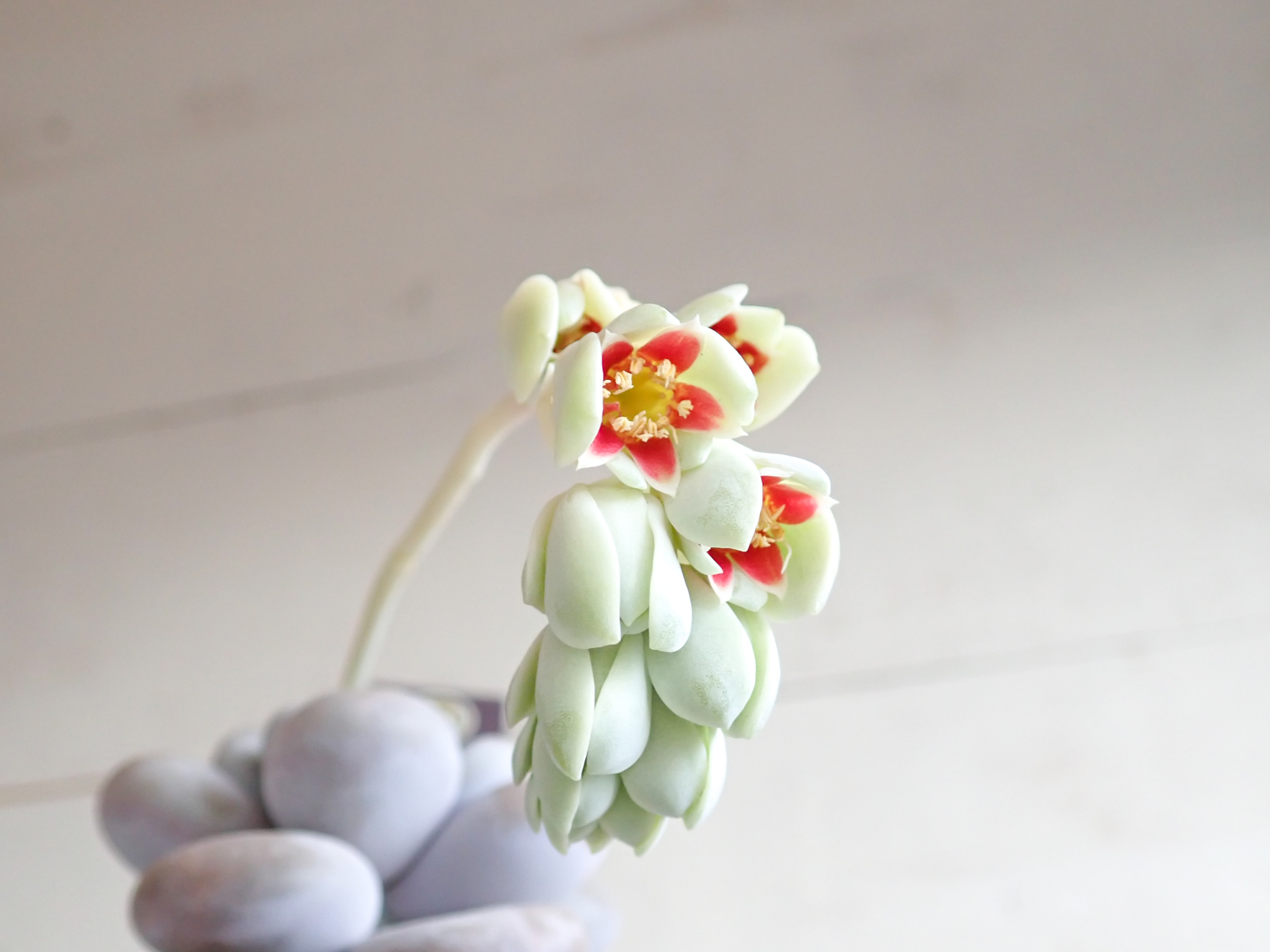また、そっくりな紫系にグラプトのアメジスティヌム(Graptopetalum amethystinum)がある。色以外は本当にそっくりだが、花だけが思いっきりグラプトなので並ぶと面白い。