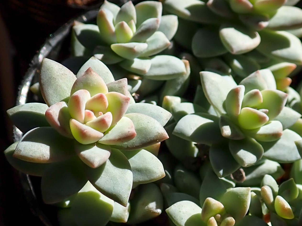 樹氷はセダム モルガニアヌム(玉つづり)xエケベリアsp.(不明)の子なので、玉つづりの血が強めに出てるんだなぁ。