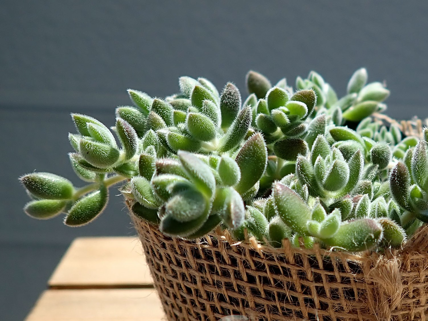 もふもふの毛で覆われたオシャレクラッスラ。紅葉が真っ赤でかわいい。