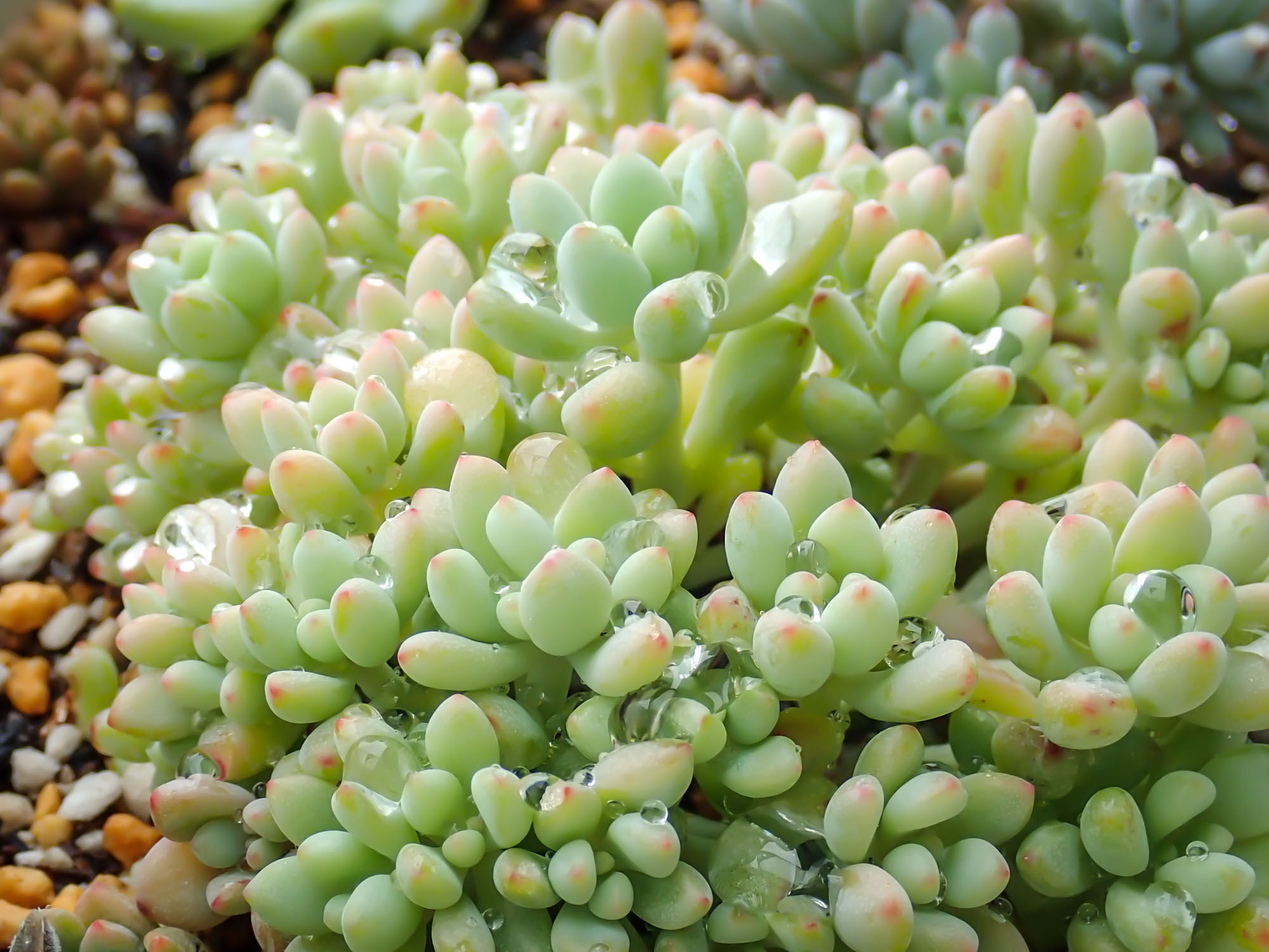 紅葉すると全体は白っぽく、葉の先だけが赤く染まるところがセダムの