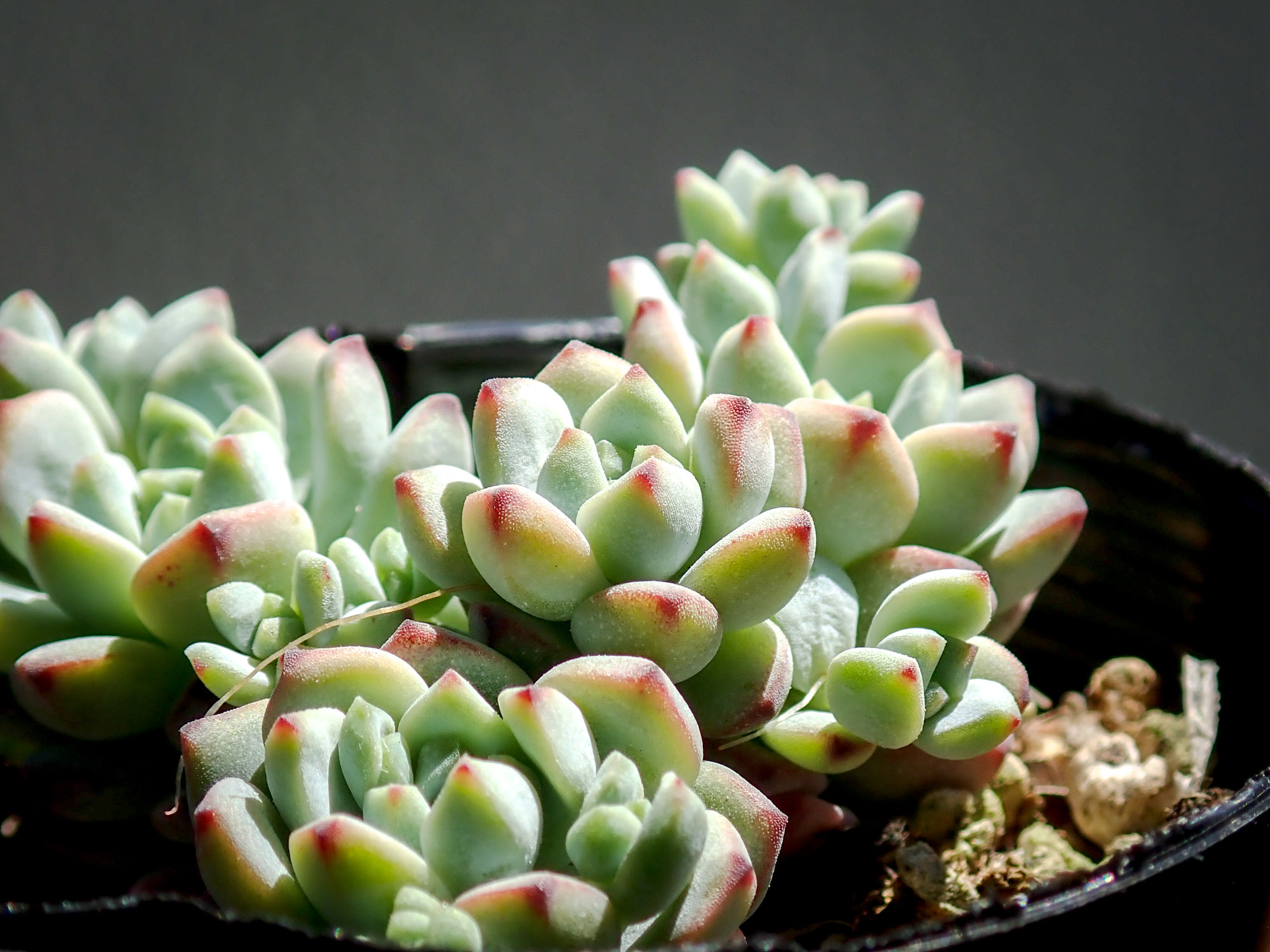 セダム ペレスデラロサエ ピンクエッジ セダム 2022年05月03日 ベンケイソウ科セダム属 ペレスデラロサエ ピンクエッジ 学名:Sedum perezdelarosae 育成:春秋型 越冬0℃ ランナー子吹きタイプ 増やし方:カット芽挿し、葉挿し、子吹き ランナー好きにはたまらないペレスデラロサエ。 マシュマロのようなやわらかな葉がかわいい。 ピンクエッジでないほうも葉の先はぽちっと紅いが、ピンクエッジのほうは若干紅い部分が広く、紅葉すると更に広範囲がじんわり染まるので冬のほうが見分けがつきやすい。