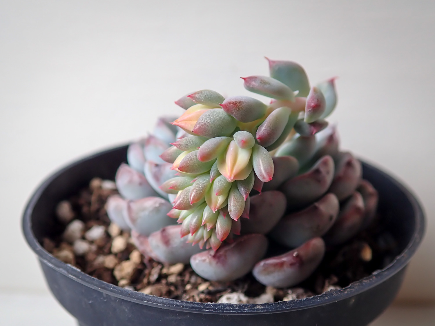 エケベリア ミニマハイブリッド エケベリア 2022年05月21日 ベンケイソウ科エケべリア属 ミニマハイブリッド 学名:Echeveria 'Minima Hybrid' 育成:春秋型 越冬-1℃ 増やし方:カット芽挿し、葉挿し、子吹き ミニマのハイブリッドはたくさんあるが、これは単に「ミニマハイブリッド」として流通しており詳細は不明。 純粋なミニマより葉のサイズも全体サイズも大きめ。 花穂がめちゃくちゃかわいい。 追記:2022/06/02 開花。